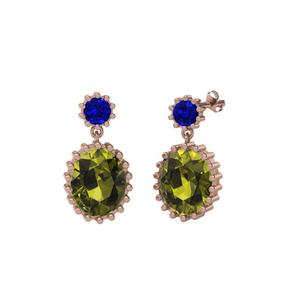 Lab safir ve peridot 925 ayar rose altın kaplama gümüş küpe