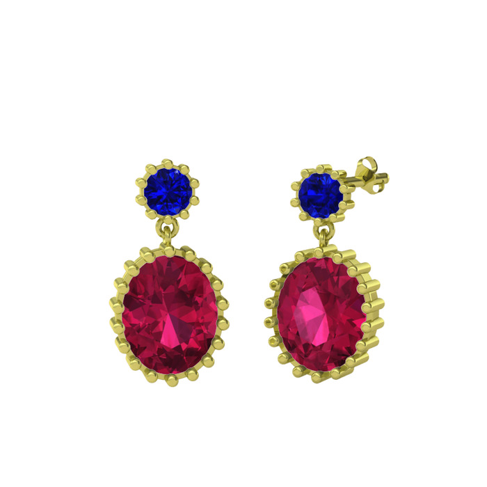 Lab safir ve rodolit garnet 925 ayar altın kaplama gümüş küpe