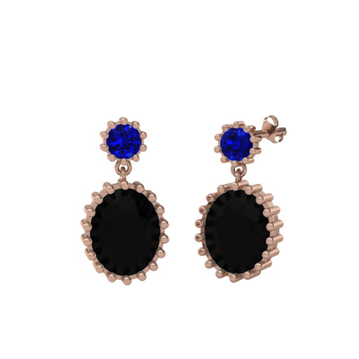 Lab safir ve siyah zirkon 18 ayar rose altın küpe