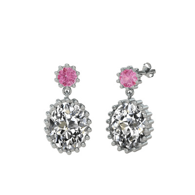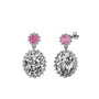 Pembe kuvars ve beyaz zirkon 18 ayar beyaz altın küpe