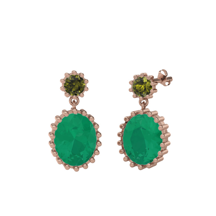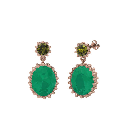 Peridot ve kök zümrüt 8 ayar rose altın küpe