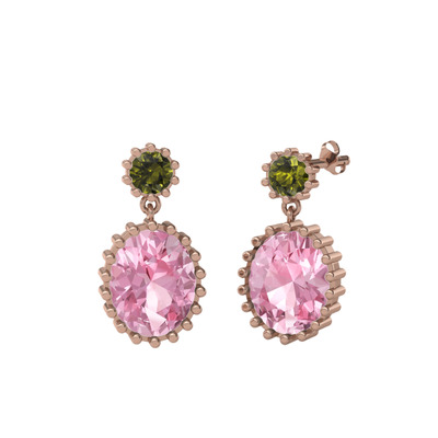 Peridot ve pembe kuvars 8 ayar rose altın küpe