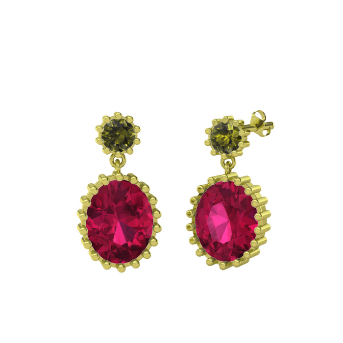 Peridot ve rodolit garnet 925 ayar altın kaplama gümüş küpe