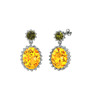 Peridot ve sitrin 8 ayar beyaz altın küpe