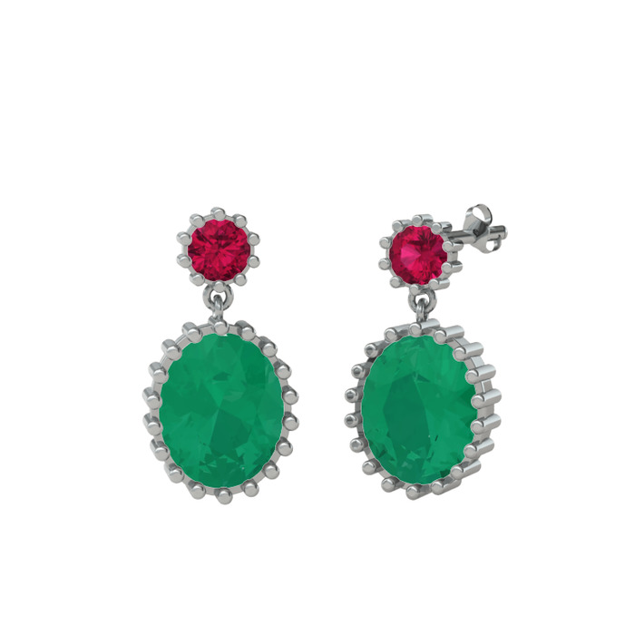 Rodolit garnet ve kök zümrüt 18 ayar beyaz altın küpe