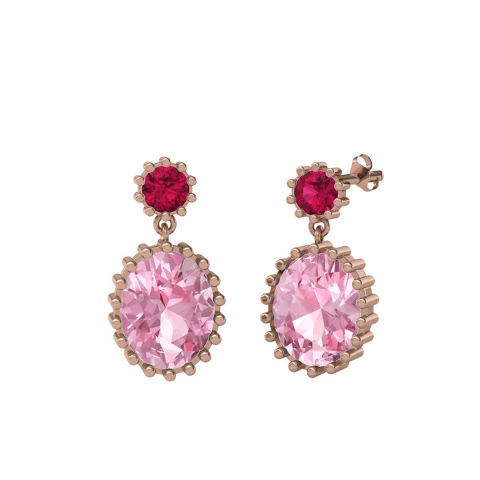 Rodolit garnet ve pembe kuvars 8 ayar rose altın küpe