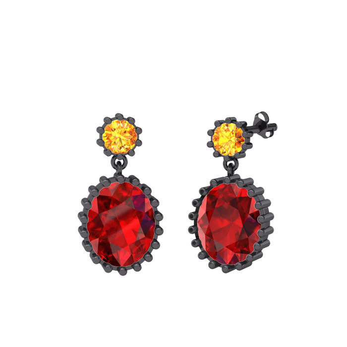 Sitrin ve garnet 925 ayar siyah rodyum kaplama gümüş küpe