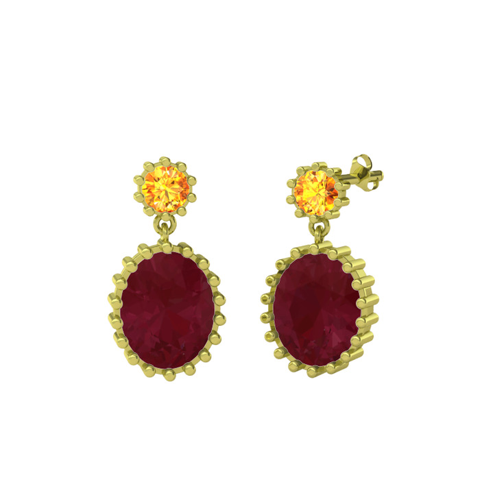 Sitrin ve kök yakut 8 ayar altın küpe
