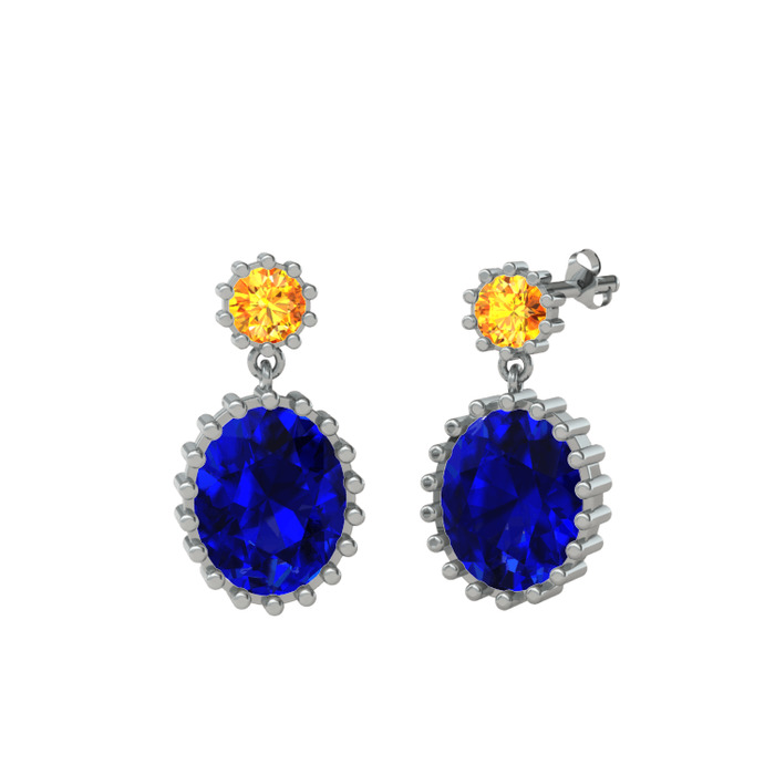 Sitrin ve lab safir 18 ayar beyaz altın küpe