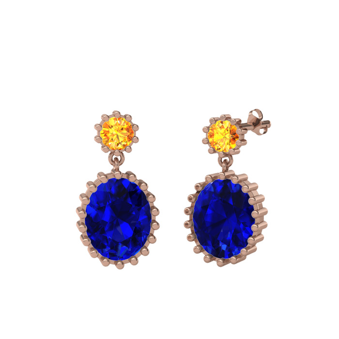 Sitrin ve lab safir 8 ayar rose altın küpe