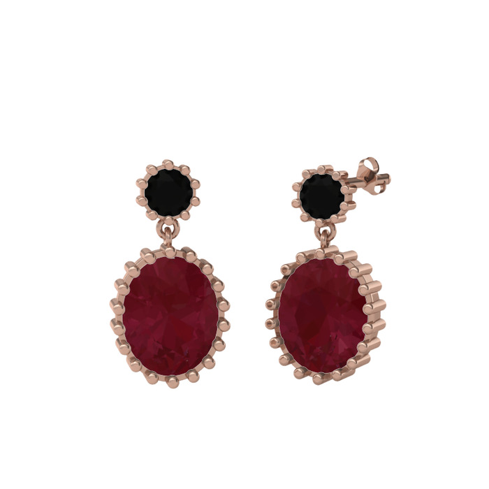 Siyah zirkon ve kök yakut 8 ayar rose altın küpe
