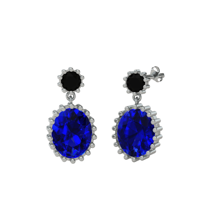 Siyah zirkon ve lab safir 18 ayar beyaz altın küpe