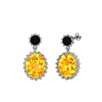 Siyah zirkon ve sitrin 8 ayar beyaz altın küpe
