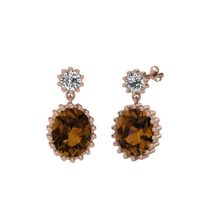 Swarovski ve dumanlı kuvars 8 ayar rose altın küpe