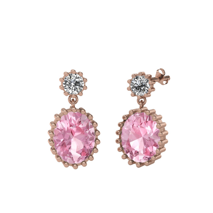 Swarovski ve pembe kuvars 14 ayar rose altın küpe
