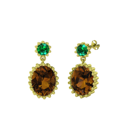 Yeşil kuvars ve dumanlı kuvars 925 ayar altın kaplama gümüş küpe