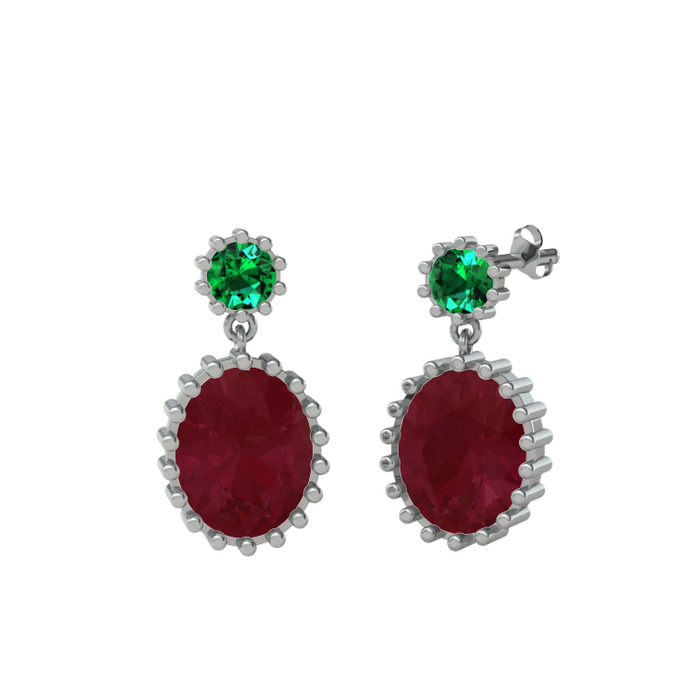 Yeşil kuvars ve kök yakut 18 ayar beyaz altın küpe