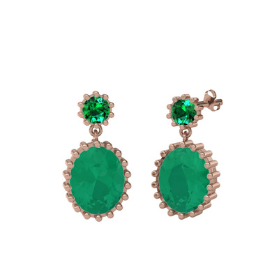 Yeşil kuvars ve kök zümrüt 18 ayar rose altın küpe