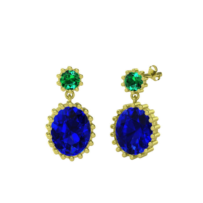 Yeşil kuvars ve lab safir 8 ayar altın küpe