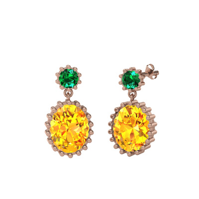 Yeşil kuvars ve sitrin 14 ayar rose altın küpe