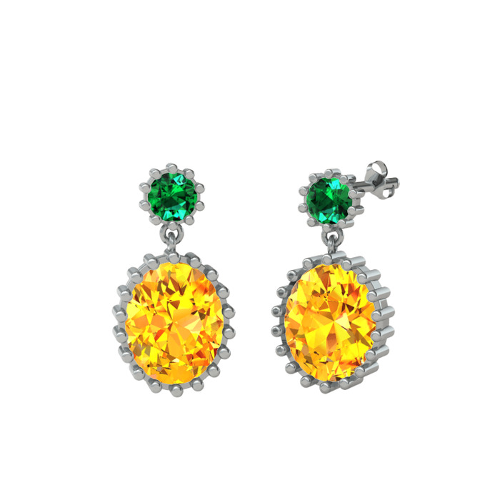 Yeşil kuvars ve sitrin 8 ayar beyaz altın küpe