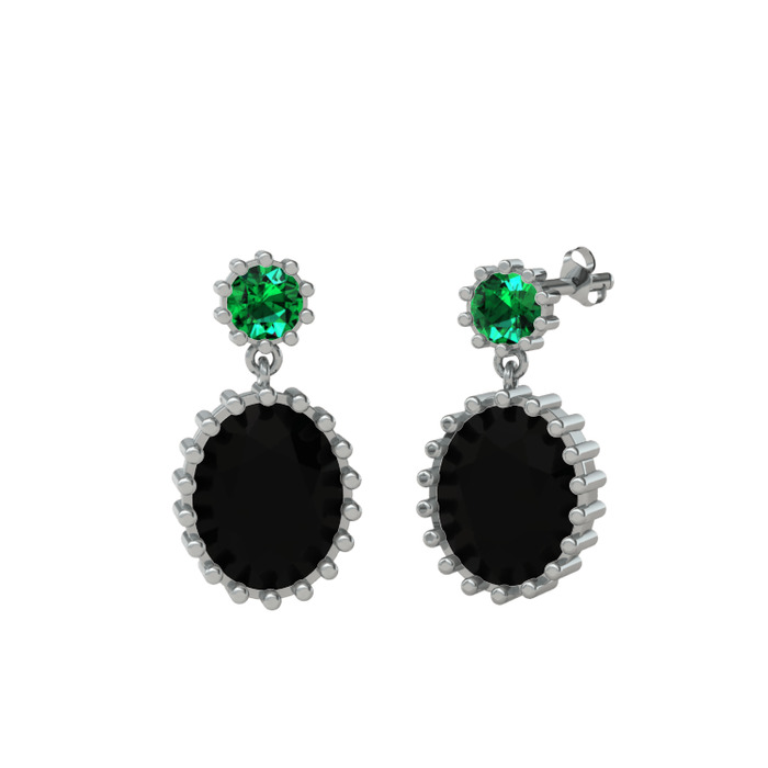 Yeşil kuvars ve siyah zirkon 8 ayar beyaz altın küpe