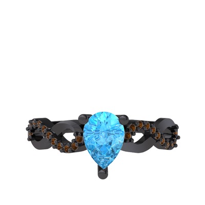 Akuamarin ve dumanlı kuvars 925 ayar siyah rodyum kaplama gümüş yüzük