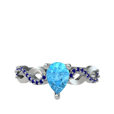 Akuamarin ve lab safir 18 ayar beyaz altın yüzük