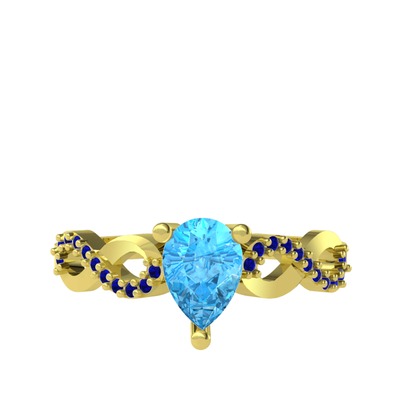 Akuamarin ve lab safir 925 ayar altın kaplama gümüş yüzük