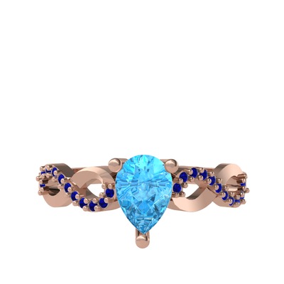 Akuamarin ve lab safir 925 ayar rose altın kaplama gümüş yüzük