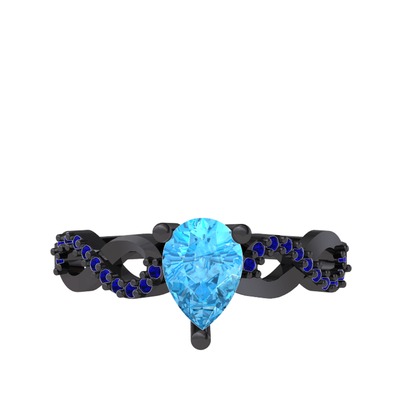 Akuamarin ve lab safir 925 ayar siyah rodyum kaplama gümüş yüzük
