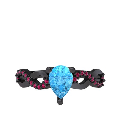 Akuamarin ve rodolit garnet 925 ayar siyah rodyum kaplama gümüş yüzük
