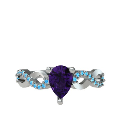 Ametist ve akuamarin 14 ayar beyaz altın yüzük