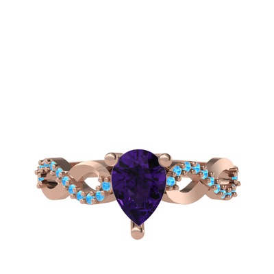 Ametist ve akuamarin 18 ayar rose altın yüzük