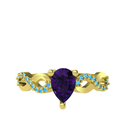 Ametist ve akuamarin 925 ayar altın kaplama gümüş yüzük