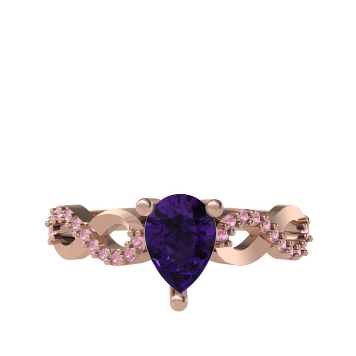 Ametist ve pembe kuvars 8 ayar rose altın yüzük