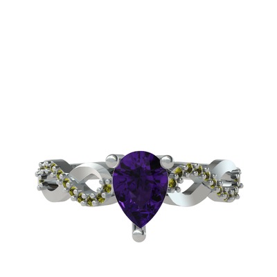 Ametist ve peridot 14 ayar beyaz altın yüzük