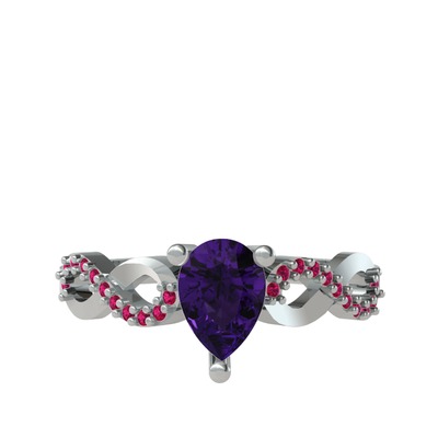 Ametist ve rodolit garnet 18 ayar beyaz altın yüzük