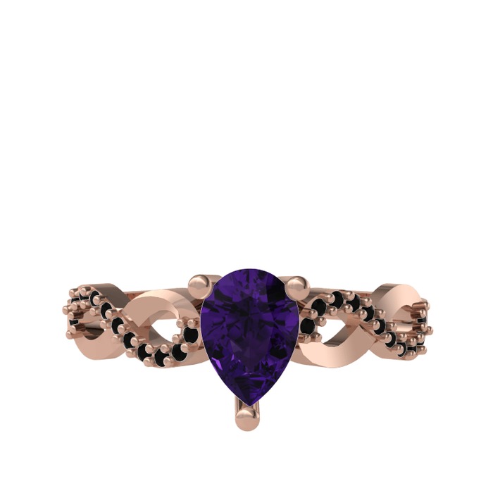 Ametist ve siyah zirkon 925 ayar rose altın kaplama gümüş yüzük