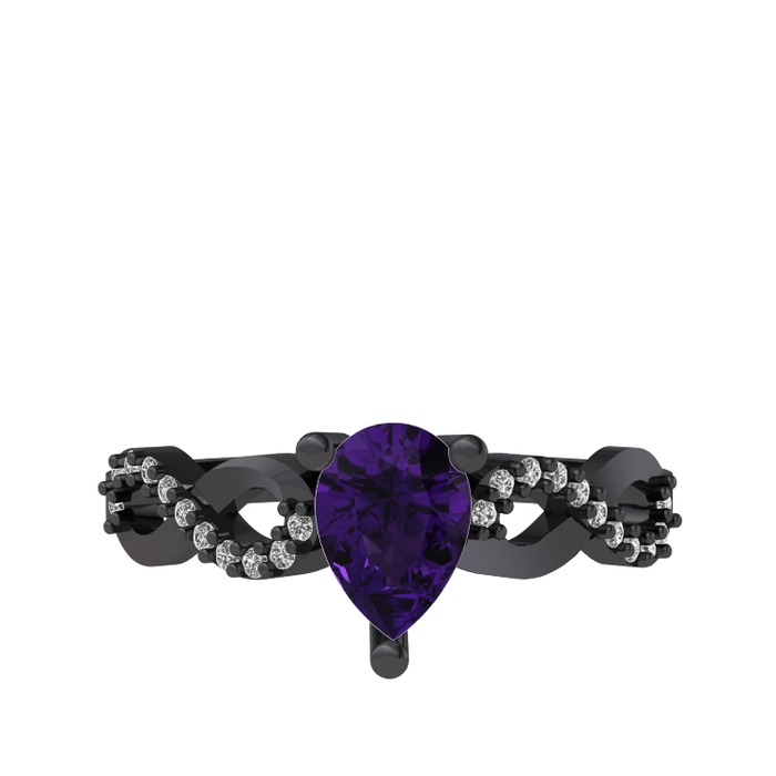 Ametist ve swarovski 925 ayar siyah rodyum kaplama gümüş yüzük