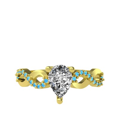 Beyaz zirkon ve akuamarin 14 ayar altın yüzük