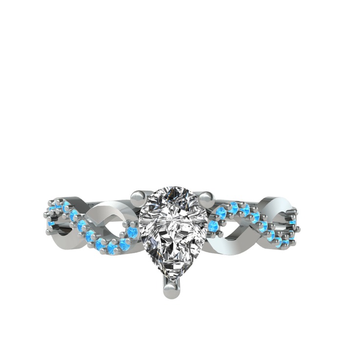 Beyaz zirkon ve akuamarin 14 ayar beyaz altın yüzük