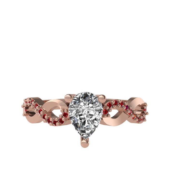 Beyaz zirkon ve garnet 14 ayar rose altın yüzük