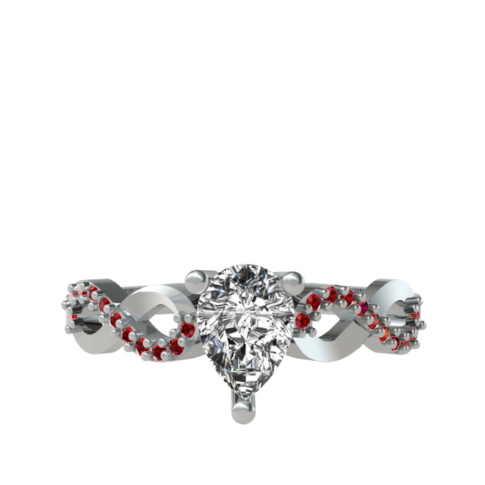 Beyaz zirkon ve garnet 8 ayar beyaz altın yüzük