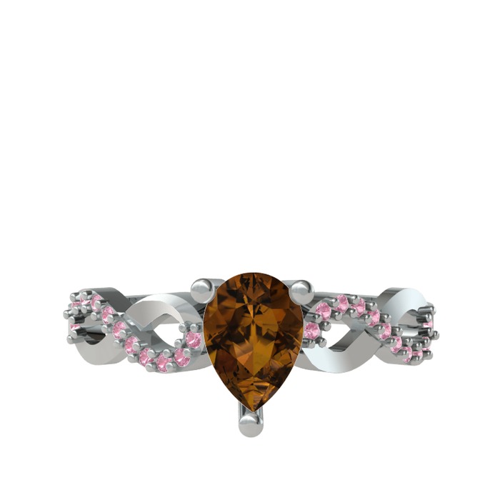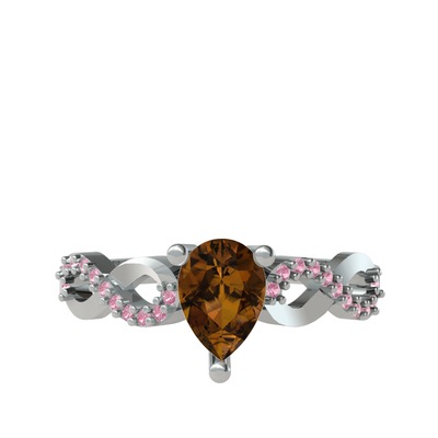 Dumanlı kuvars ve pembe kuvars 14 ayar beyaz altın yüzük