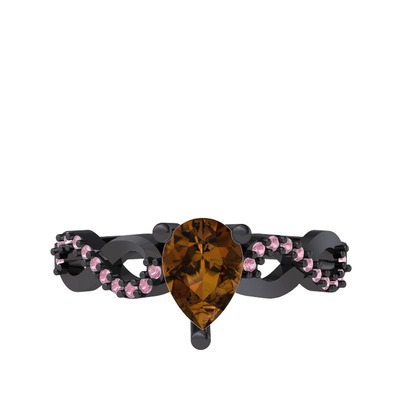 Dumanlı kuvars ve pembe kuvars 925 ayar siyah rodyum kaplama gümüş yüzük