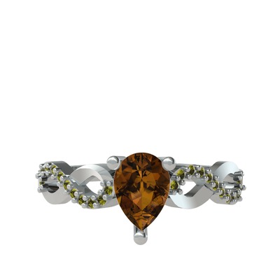 Dumanlı kuvars ve peridot 8 ayar beyaz altın yüzük