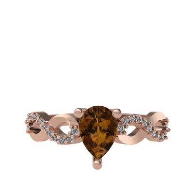 Dumanlı kuvars ve pırlanta 14 ayar rose altın yüzük (0.176 karat)