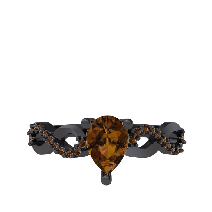 Dumanlı kuvars 925 ayar siyah rodyum kaplama gümüş yüzük