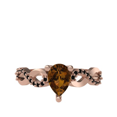 Dumanlı kuvars ve siyah zirkon 14 ayar rose altın yüzük